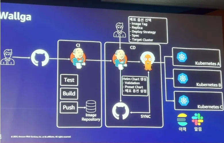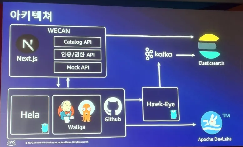 CI/CD 플랫폼인 Wallga, Kubernetes Event 플랫폼인 Hawk Eye, kubectl 사용성 개선 플랫폼 Hela 등등을 활용하여 WECAN 이라는 공유 플랫폼을 생성하여 사내에서 개발자가 보다 편하고 효율성을 높일 수 있도록 하였다.