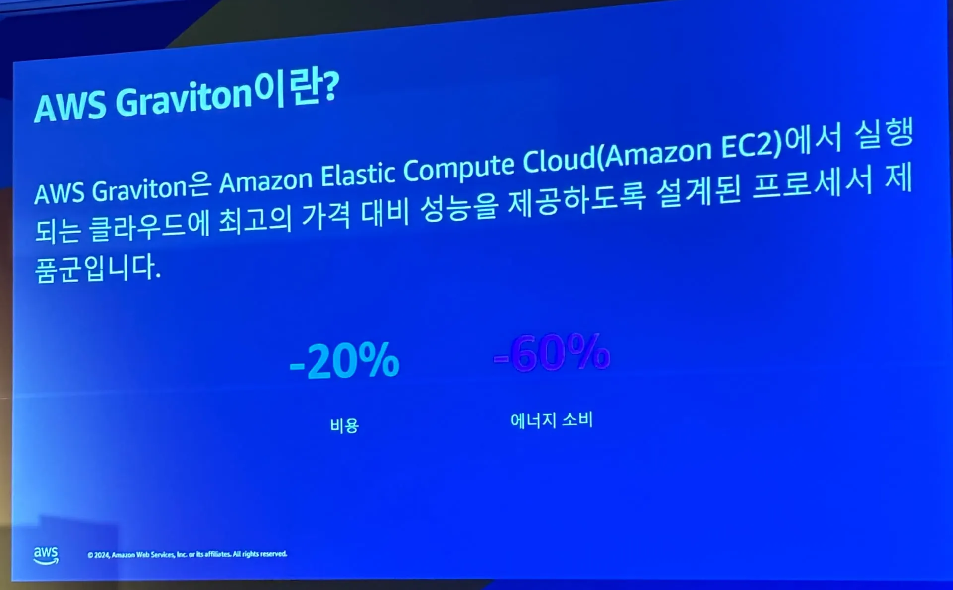 AWS Gravition을 적용한 사례 및 이점에 대해서 설명하는 세션이였다.