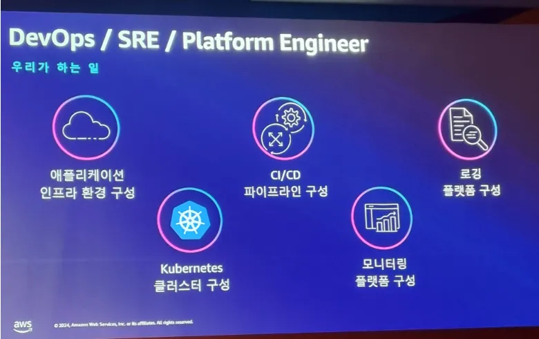 플랫폼 엔지니어링을 통해 플랫폼화 하여 개발자는 개발에만 전념하도록 경계를 두고 생산성을 높일 수 있는 장점에 대해서 고민하면 이렇게 내부적으로 플랫폼화 할 수 있구나 라는 점을 느꼈으며, 시간을 투자하여 CI/CD 및 인스턴스 관리 측면만 구성해두면 보다 더 어플리케이션 개발에 생산성을 늘게 할 수 있고 인스턴스 관리도 명확하게 할 수 있을 것 같다는 생각이 드는 세션이였습니다.