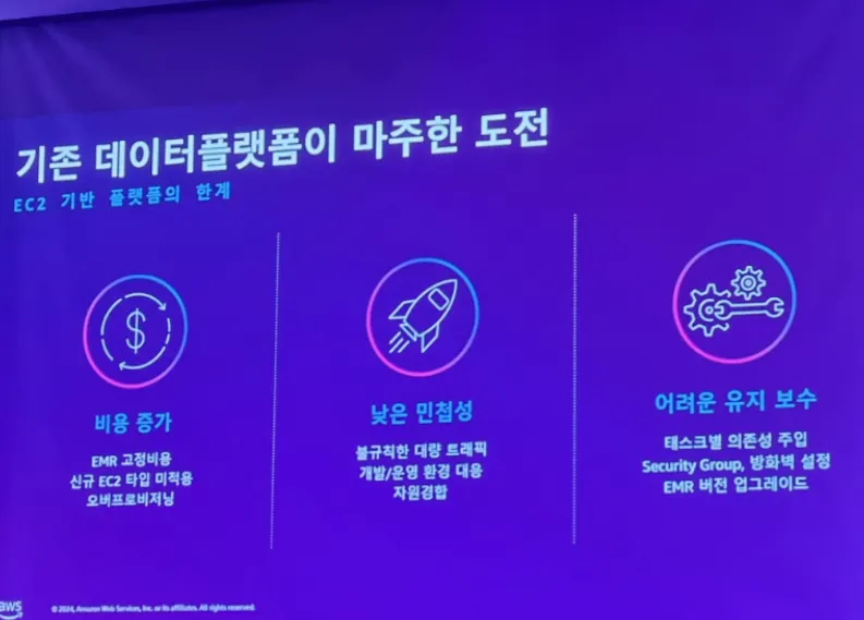 최근에 가장 주목받고 있는 Gen AI에 대응하기 위해 Amazon에서 출시한 Bedrock 서비스에 대한 소개 세션으로 Bedrock으로 어떻게 기존의 Gen AI의 문제들을 해결하고 손쉽게 구축할 수 있는지를 설명해주는 세션이었다.