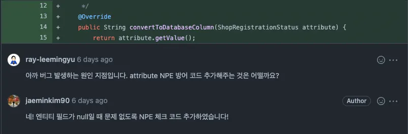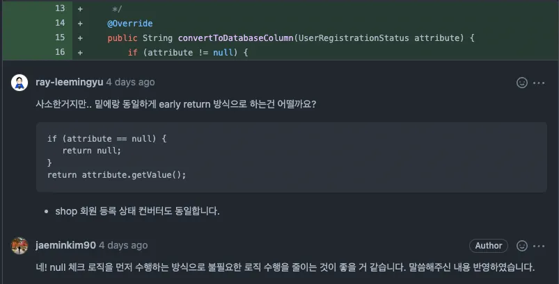 더 나은 null 처리 방식에 대한 피드백도 받을 수 있었습니다.