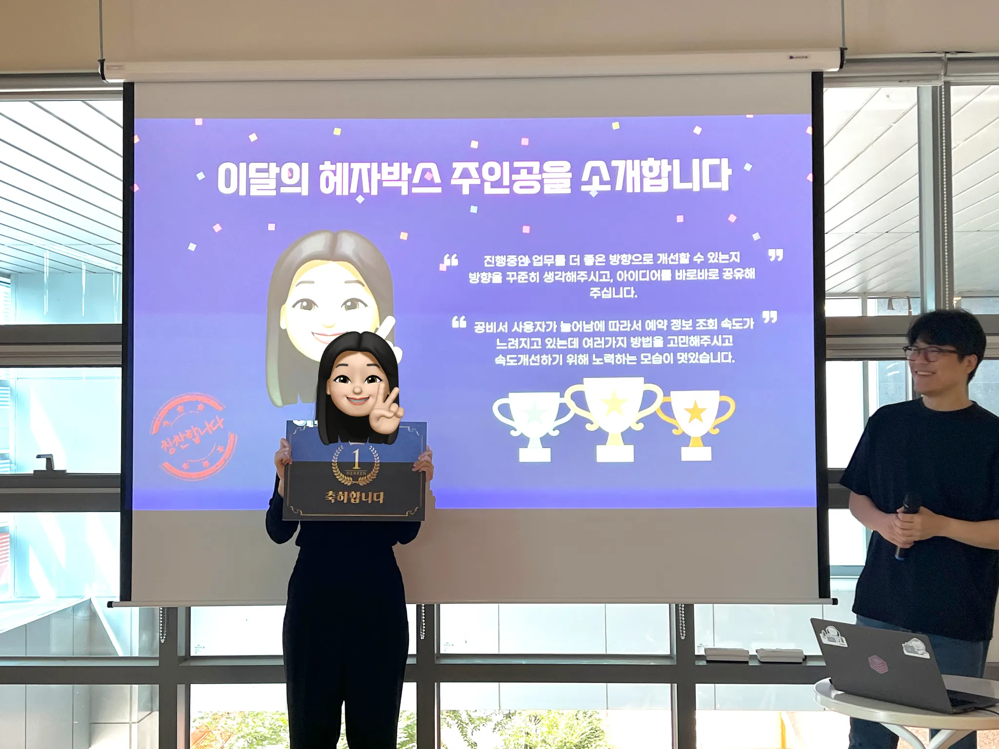 헤렌만의 우수사원 포상제도가 있습니다! 헤렌의 일잘법 8가지를 가장 잘 지킨 헤더에게 칭찬의 의미를 담아 자체 사이트를 통해 투표하고 있어요.