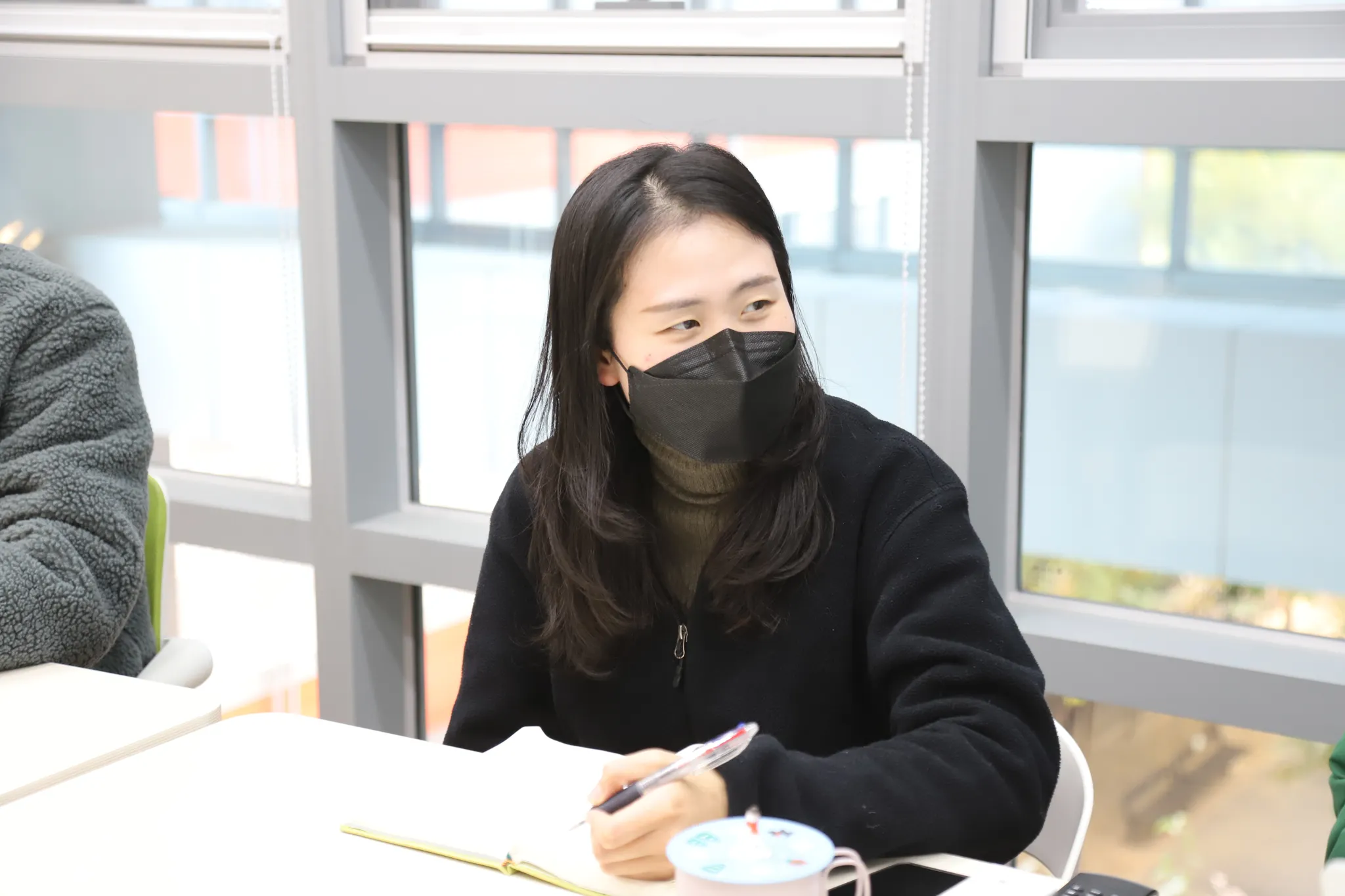 회의에 참여 중인 레나님