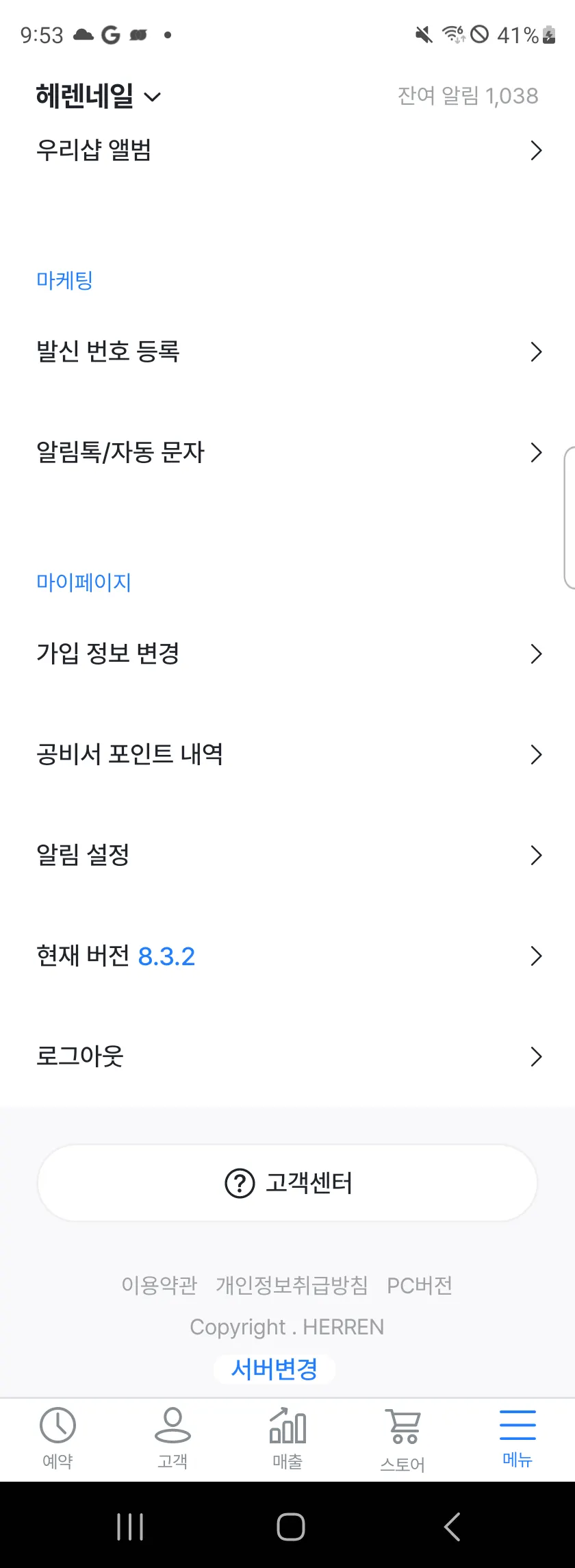 메뉴 최하단: 로그인 상태일 때 변경 가능하도록