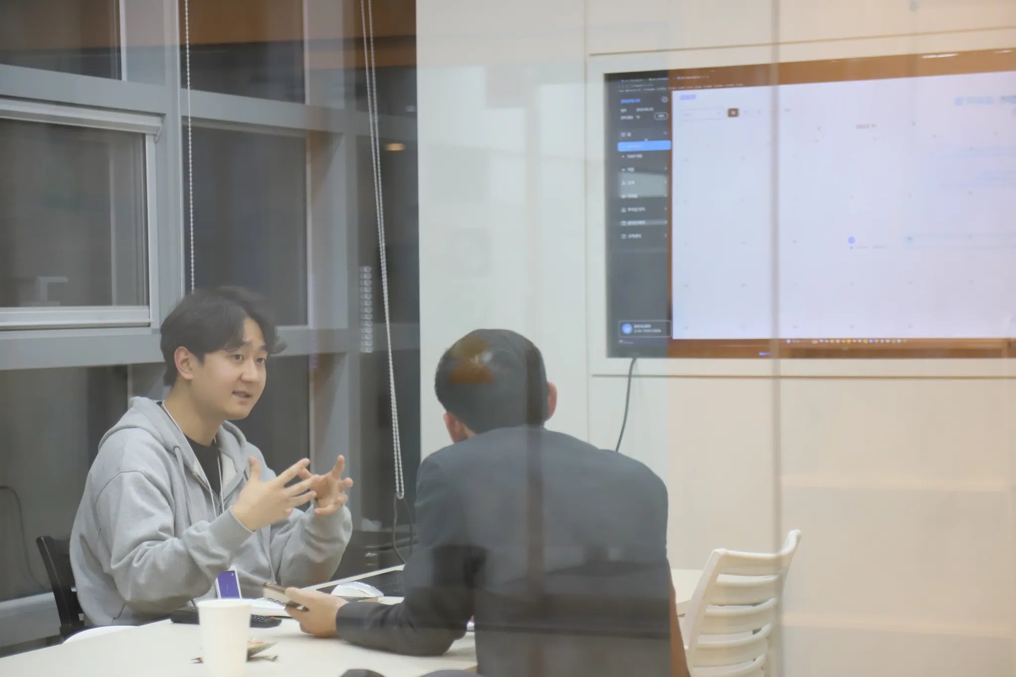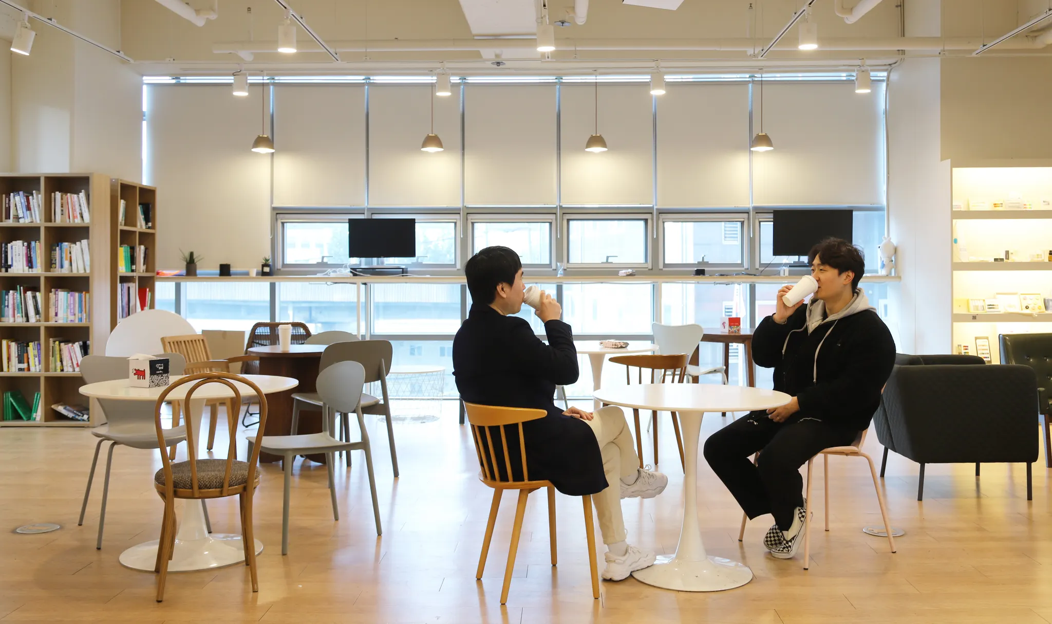 아침에 커피챗을 하고 계시는 CSO 진님과 민님
